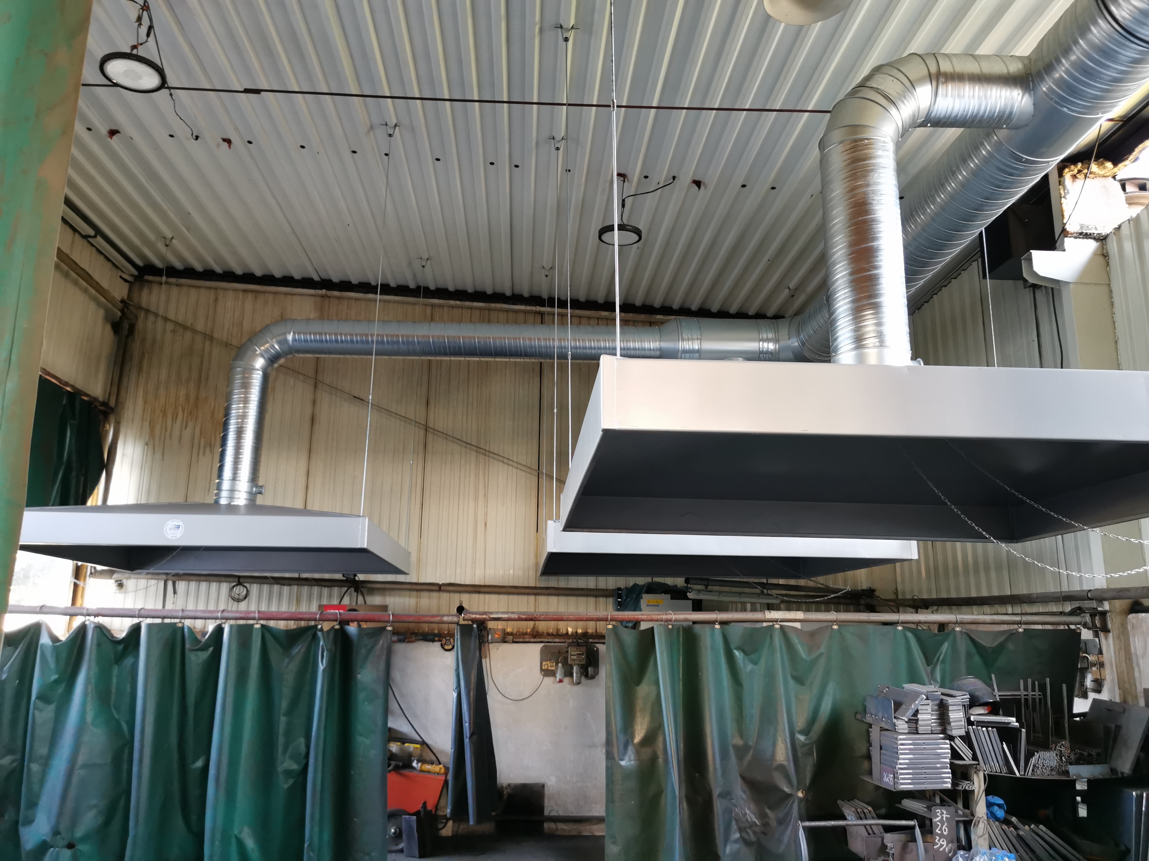 · skuteczny odciąg dymów i pyłów spawalniczych - zarówno ze stanowisk roboczych, jak i czyszczenie powietrza w całej hali.