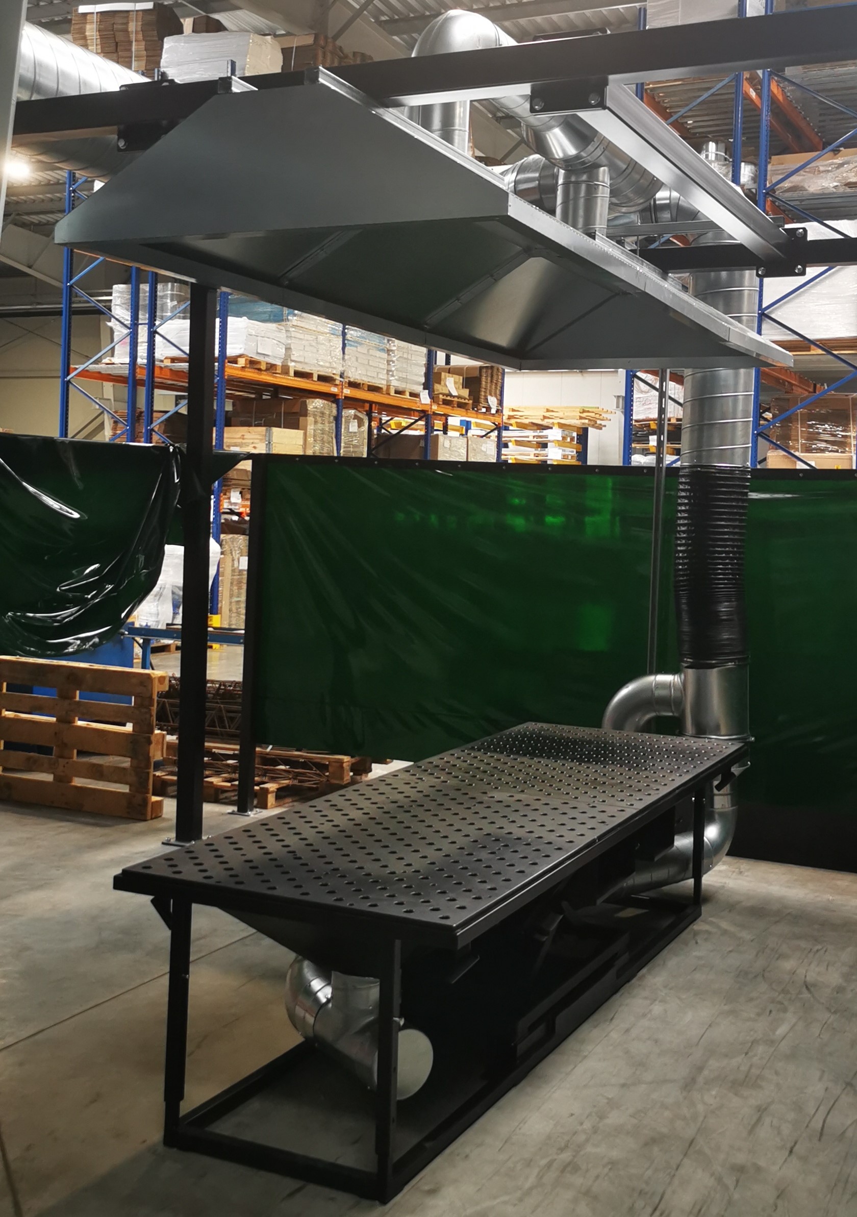 W przypadku stołów szlifierskich odciąg zanieczyszczonego powietrza jest realizowany poprzez blat oraz tylną ściankę. W przypadku stołów spawalniczych stosuje się dodatkowo okap, zawieszony nad blatem do pochłaniania dymów, które nie zostały pochłonięte przez blat i ściankę.